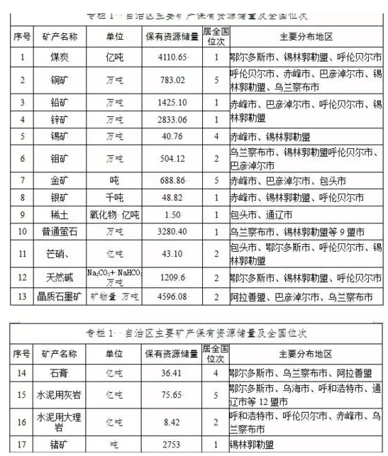 內(nèi)蒙古自治區(qū)礦產(chǎn)資源總體規(guī)劃(2016-2020年)
